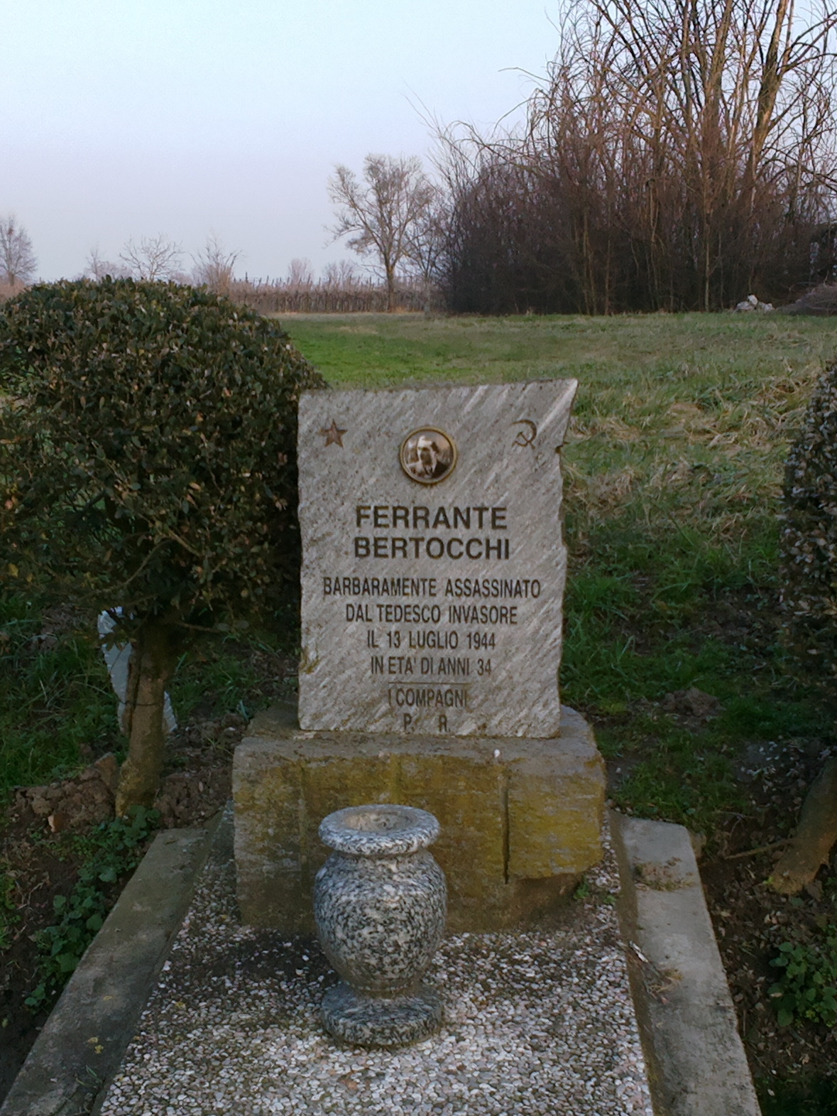 «FERRANTE/ BERTOCCHI/ BARBARAMENTE ASSASSINATO/ DAL TEDESCO INVASORE/ IL 13 LUGLIO 1944/ IN ETA' DI ANNI 34/ I COMPAGNI/ P. R.»