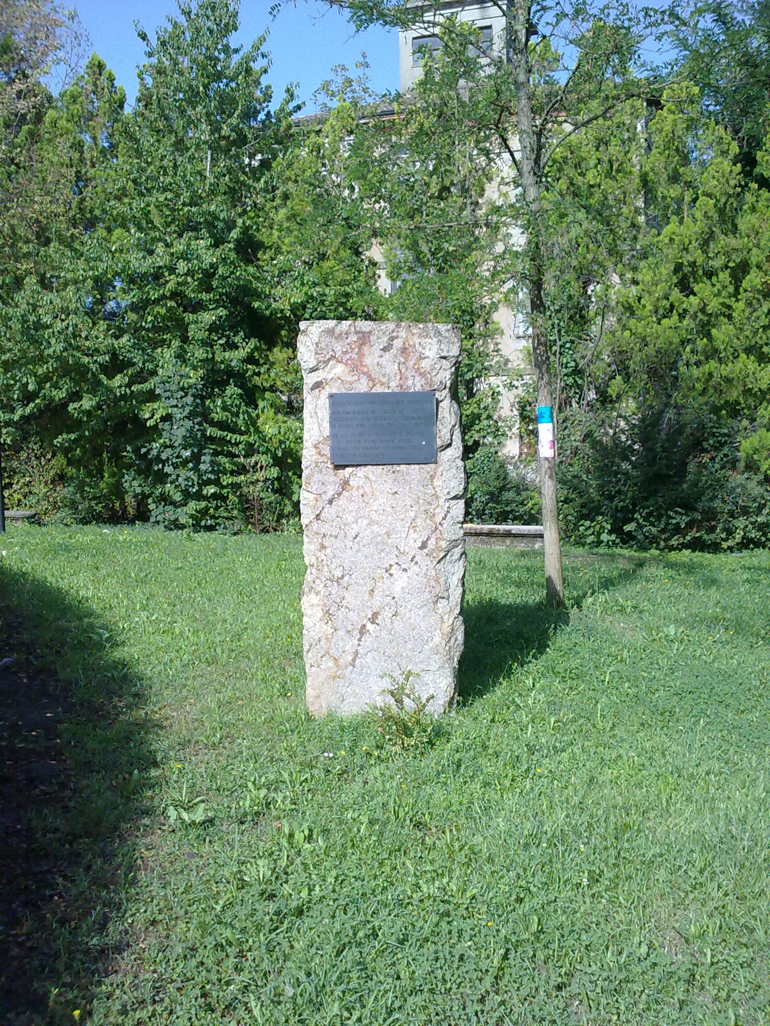 Si tratta di un masso di pietra di forma rettangolare al quale è stata applicata una targa in bronzo. L'inaugurazione è avvenuta il 25 aprile 1995. L'epigrafe riportata dalla targa è tratta da Julius Fucik, Scritto sotto la forca.
